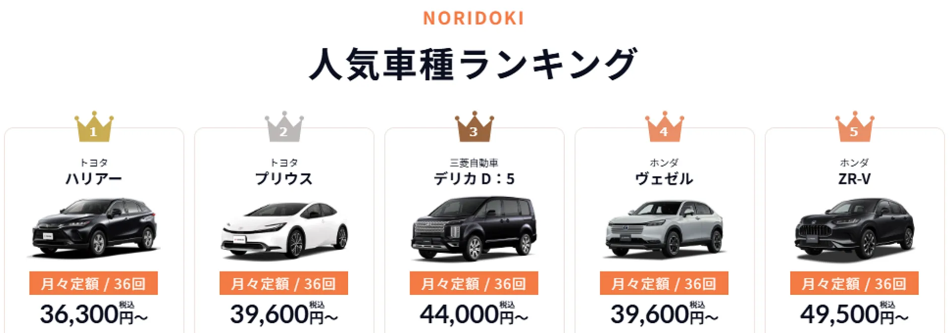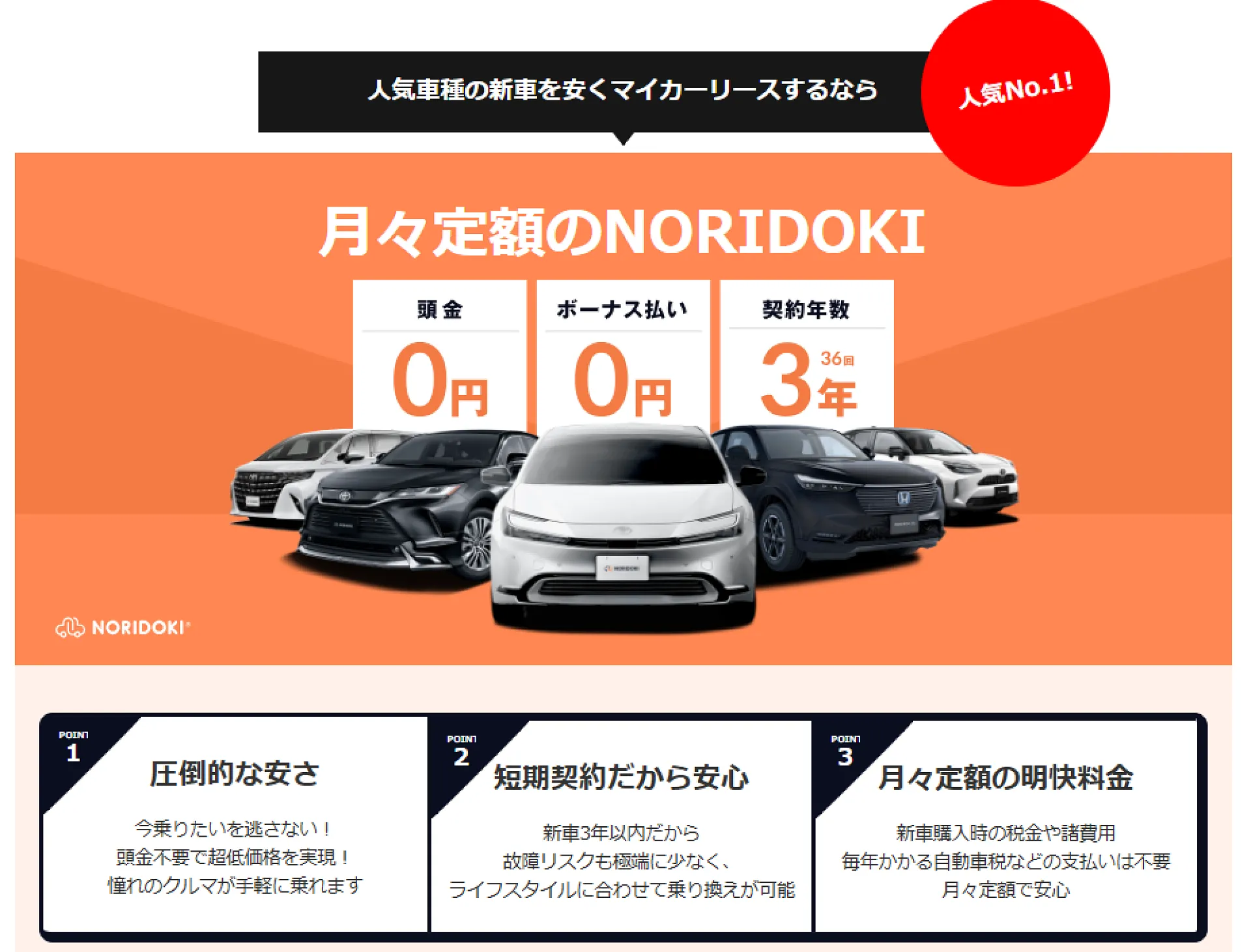 NORIDOKI とは、ジョイカルジャパンが提供する新車のカーリースサービスです。