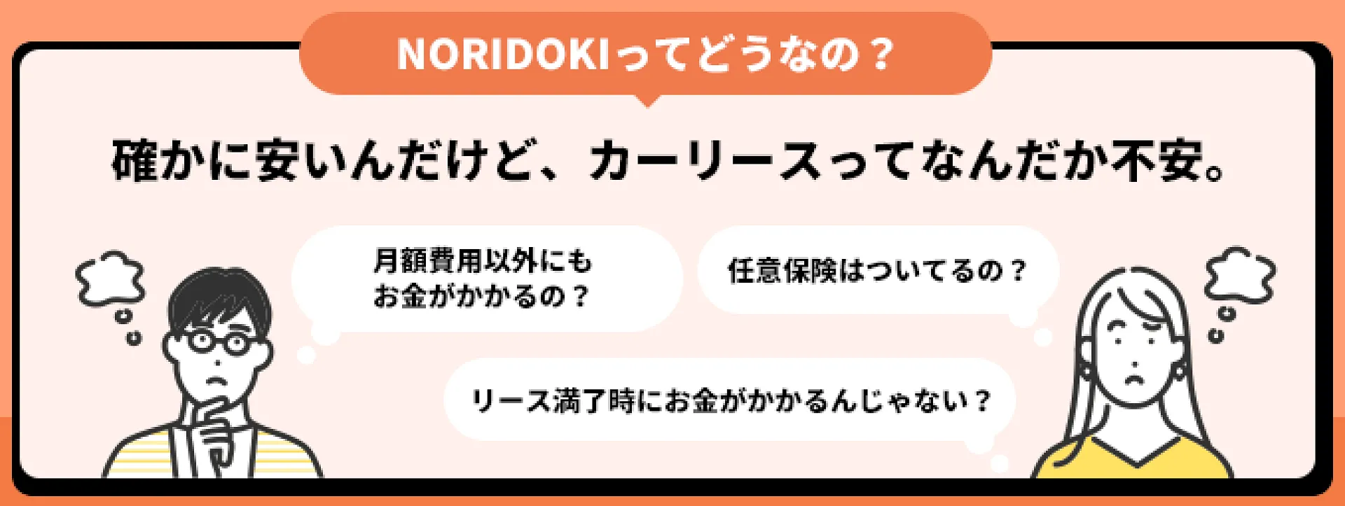 クルマを所有すると、コストが高いだけでなく、車検・税金・故障・売却など非常に手間や心配が増えます。それを解消したのが、NORIDOKIのカーリースです。