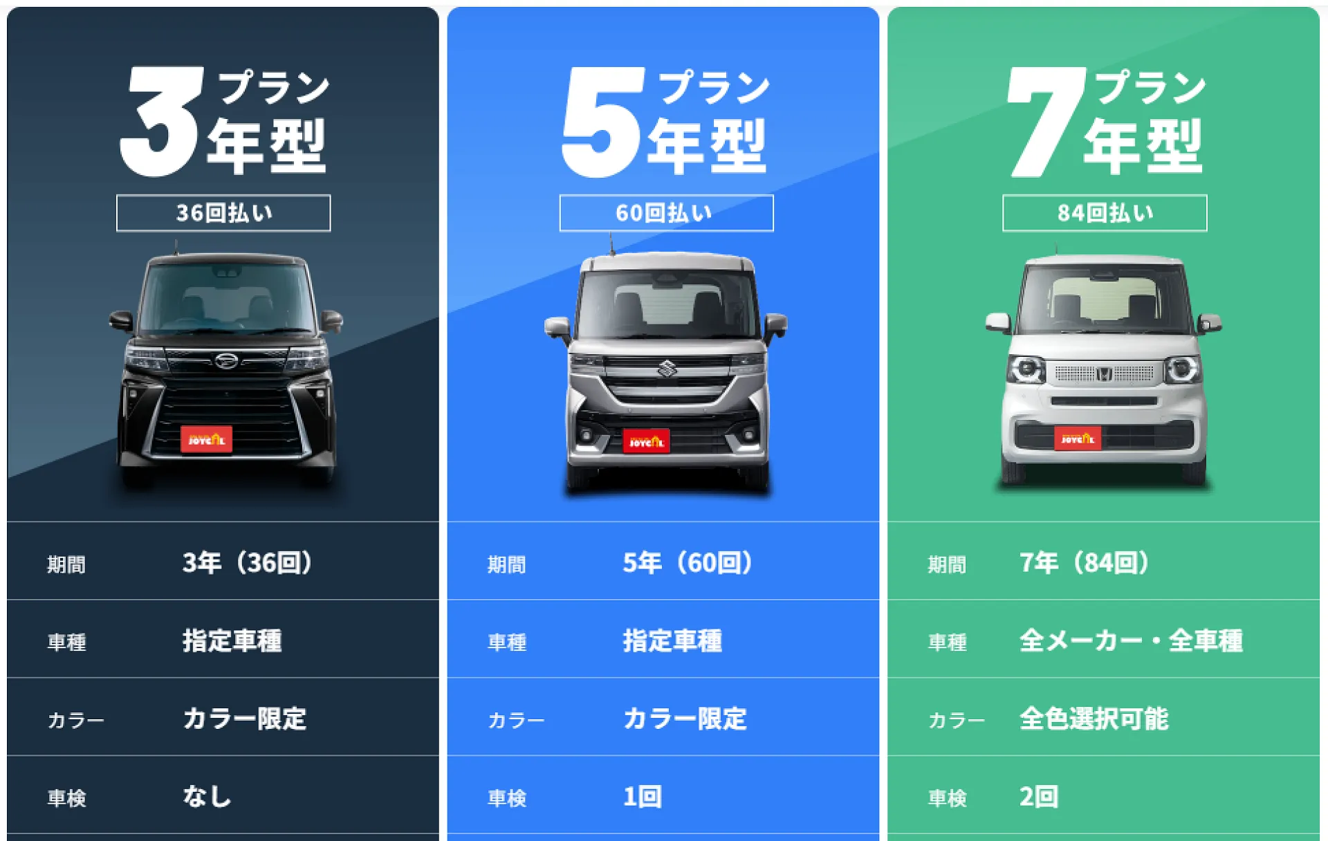 3年以内の契約なので、故障リスクが非常に少なくなります。急な引っ越し、転勤等その時々の状況に合わせた車を選べます。